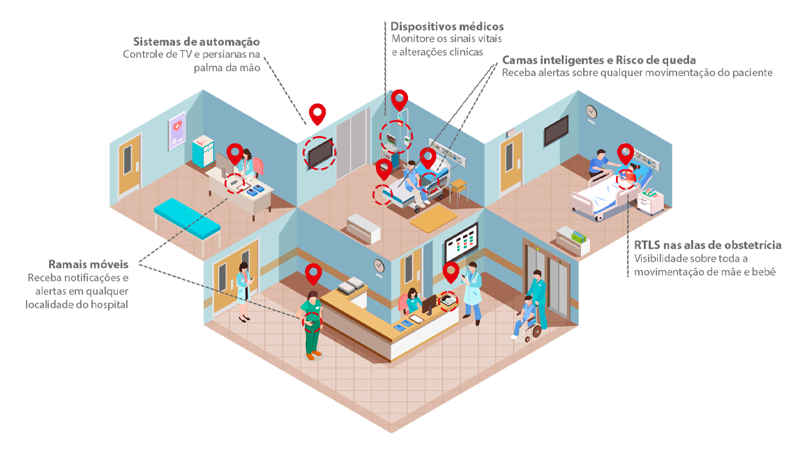 A tecnologia sem fio permite que o sistema seja instalado em poucas horas, sem necessidade de obras ou paradas na rotina hospitalar.